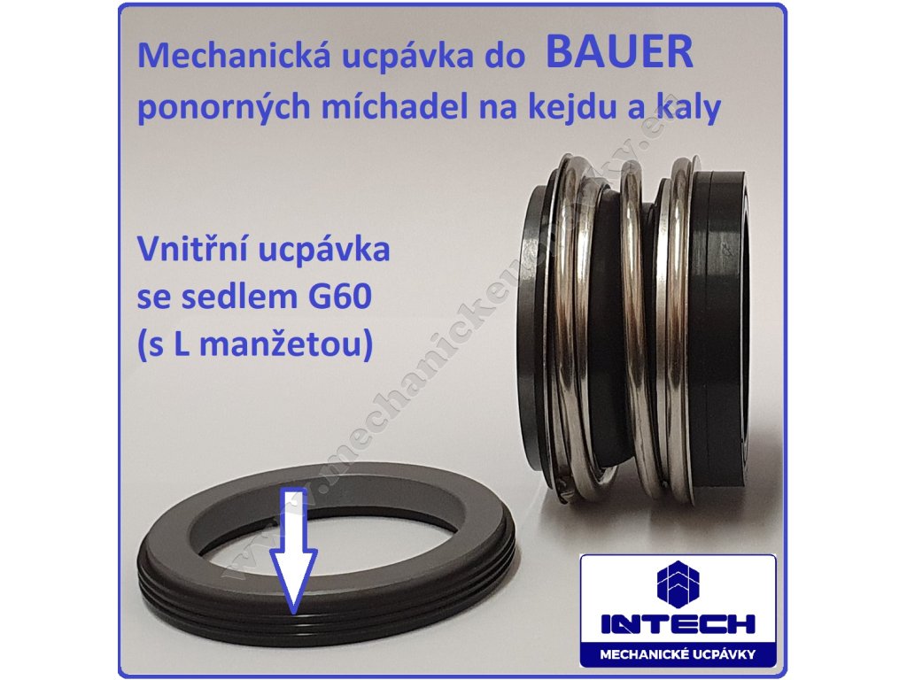 KG12 G60 / L7 je dvojitá ucpávka do míchadel BAUER. První ucpávka s tvarově upraveným sedlem L7, které je pod vrtulí aretováno plechovým mezikružím a segrovkou. Druhá ucpávka je standardní prodloužená KG12 se sedlem G60. Materiálové provedení obou ucpávek je SiC/SiC/VITON ( karbid křemíku/karbid křemíku/pryže VITON) pro těžký provoz.